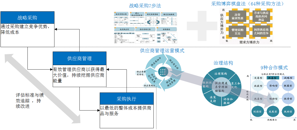 通过战略采购7步法和采购博弈棋盘法,建立竞争优势,持续降低企业采购成本;同时通过先进的供应商运营模型,持续挖掘供应商能量,供应商管理模型的九宫格,直击供应商关系管理的要核心,奠定共赢的基础