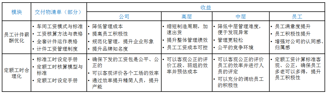 我们一般6个月以内即可为企业完成计件薪酬体系的搭建,后续如能辅以数字化手段,效果更佳